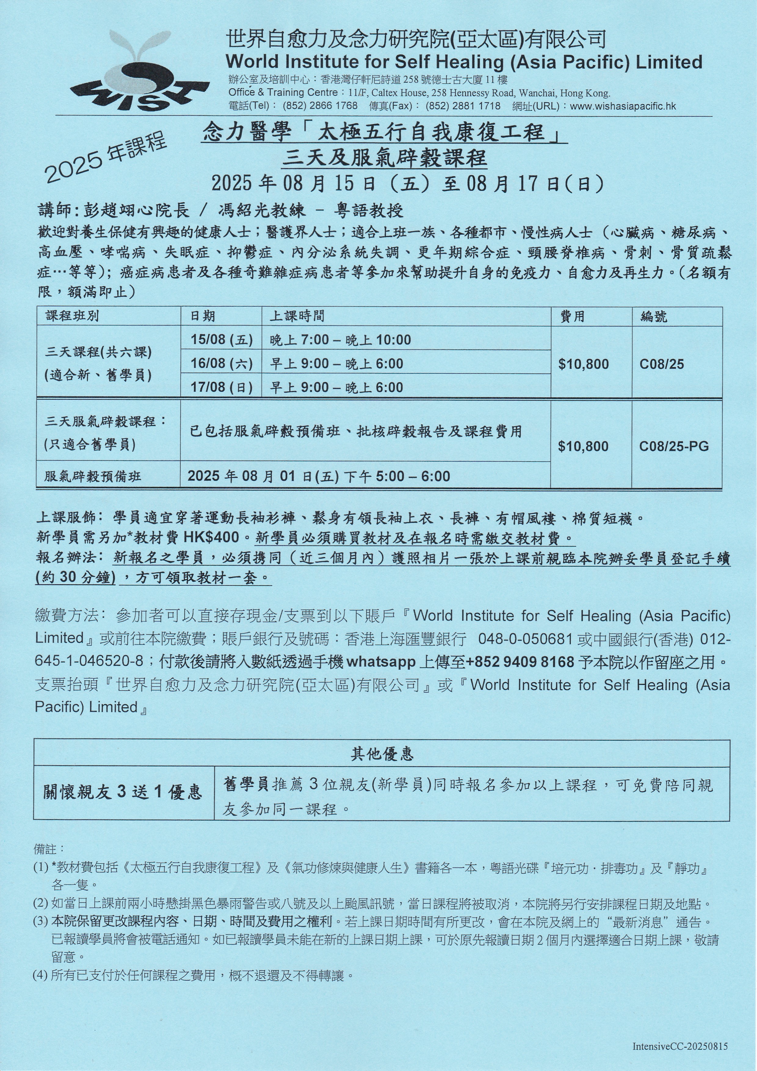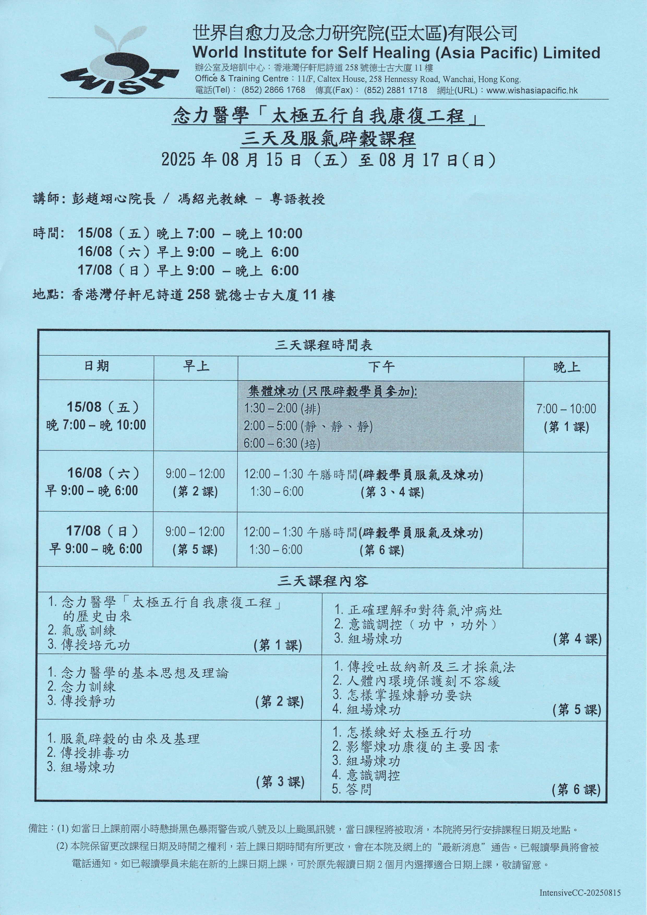 2025年08月15(五)至17日(日)三天課程現已接受報名